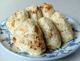 竹輪の蒲焼を刻んでご飯に混ぜました。筋っぽかった山椒の佃煮もみじんにして一緒に和えておにぎりに。この山椒佃煮がなかなかいい活躍で、おにぎりを頬張ると山椒のいい香りが口いっぱい広がります。ナイスリカバー! |
