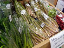 今日のお買い物は、道すがらの道の駅直売所で、新鮮なズッキーニやアスパラなどを買いました。後は、津南のスーパーで身欠きにしん、ナメコ、丘ひじきなど買い込みました。このあたりでは山菜類を、身欠きにしんや鯖缶などの日持ちがする魚系食材と合わせて煮物にするのが今でも定番のようで、たくさん売られているのを目にします。